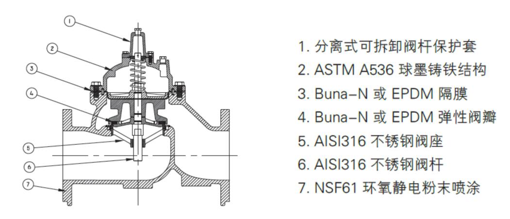 卷帘式隔膜,控制过程稳定 上下控制腔水流相互作用,控制过程更精确 |