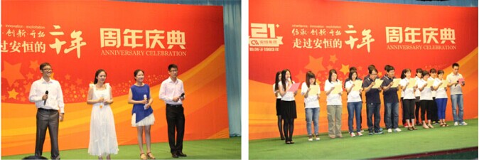 安恒集团21周年庆典是全体员工们的节日,经过多年的并肩奋斗和同甘共苦,安恒集团每一位同仁都早已把自己融入这个大家庭中。员工代表向大家分享了各自在工作中和生活中的体会,深刻地诠释了安恒企业文化的精髓—责任、协作、尊重、学习、坚持。
