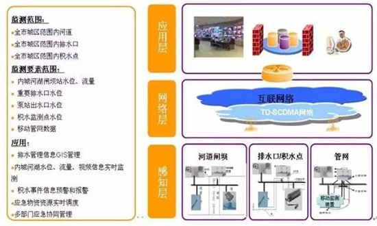 大唐智慧水利系统使用了自动化信息采集监测设备,对雨量、水位、水量、水质等信息进行实时的采集,通过无线网络、有线网络进行传输汇集,通过灌区信息化管理、城市排水应急管理、大型泵站综合自动化控制和水资源管理等多种应用,服务于防汛抗旱、城市水务信息化、水资源监测管理等多项业务管理。比如其城市排水应急管理系统,服务于大、中城市水务管理部门,对城市中立交桥下等积水点实现视频监测,采集降雨量、水库、河道、易积水点的水位、流量信息,通过TD-SCDMA等无线网络方式实时传输至局中心防汛管理部门,实现积水事件预警、应急物资管理和多部门应急协同。