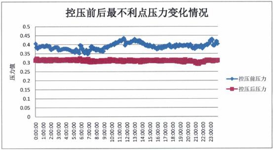 回龙观供水最不利点在智能减压实施前后的压力监测对比